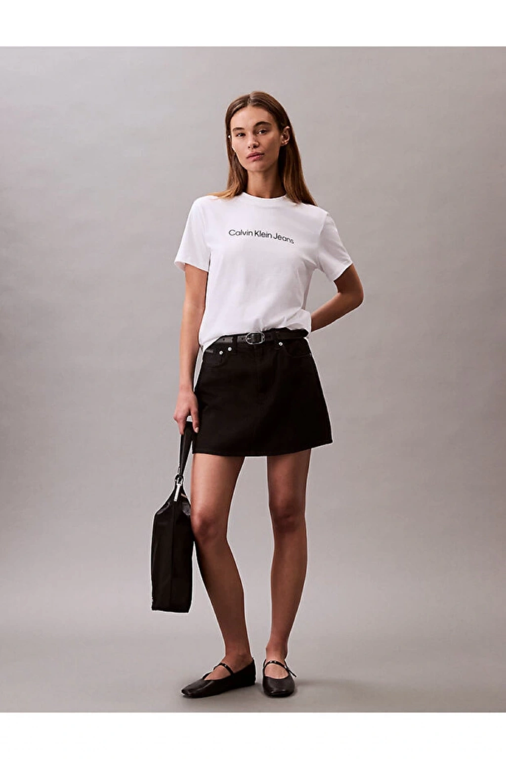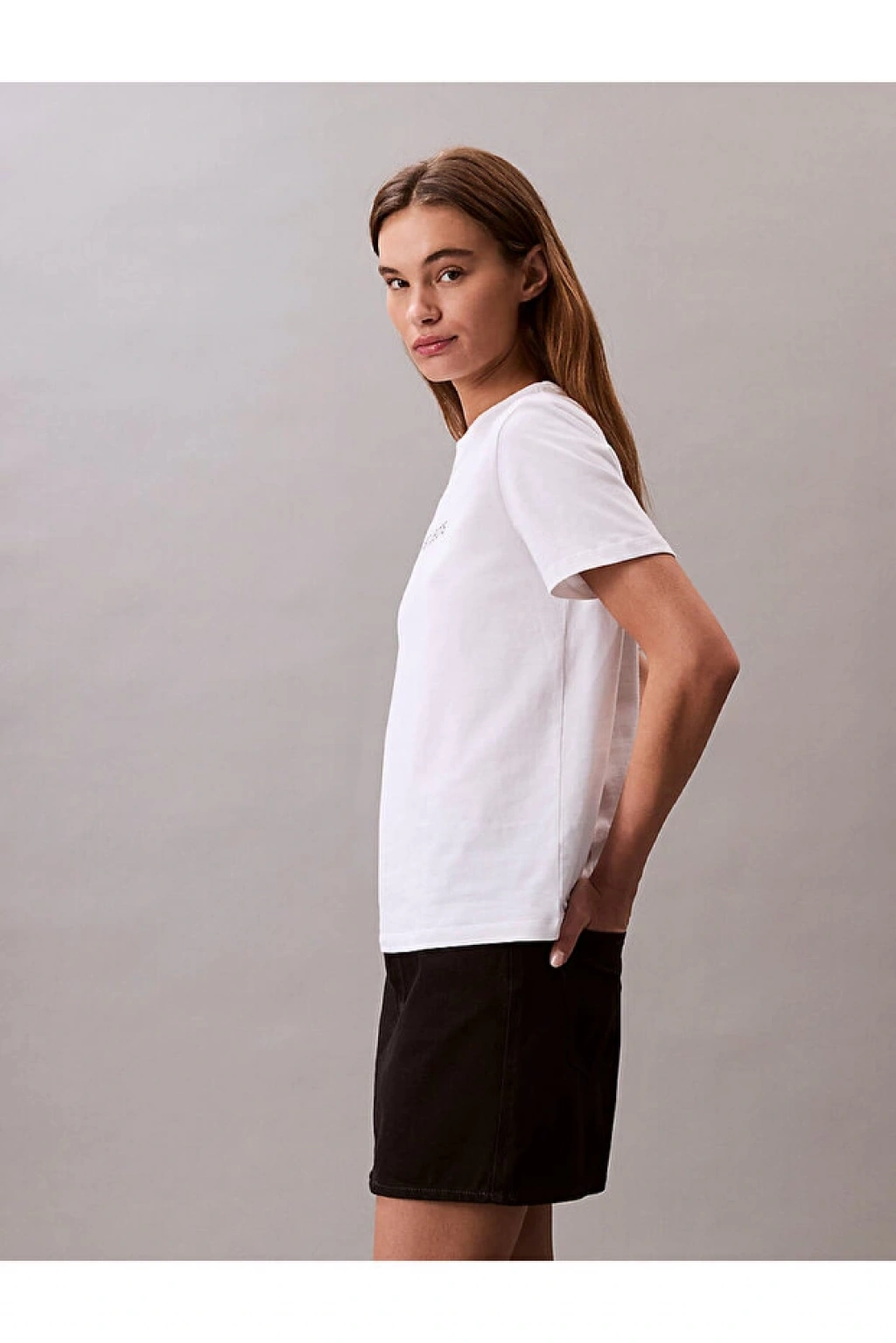 Calvin Klein Jeans Yuvarlak Yaka Baskılı Beyaz Kadın T-Shirt